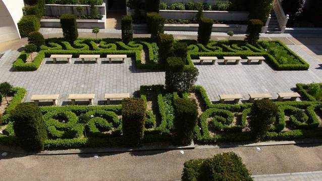 这是由三个弧形的楼构成的广场。