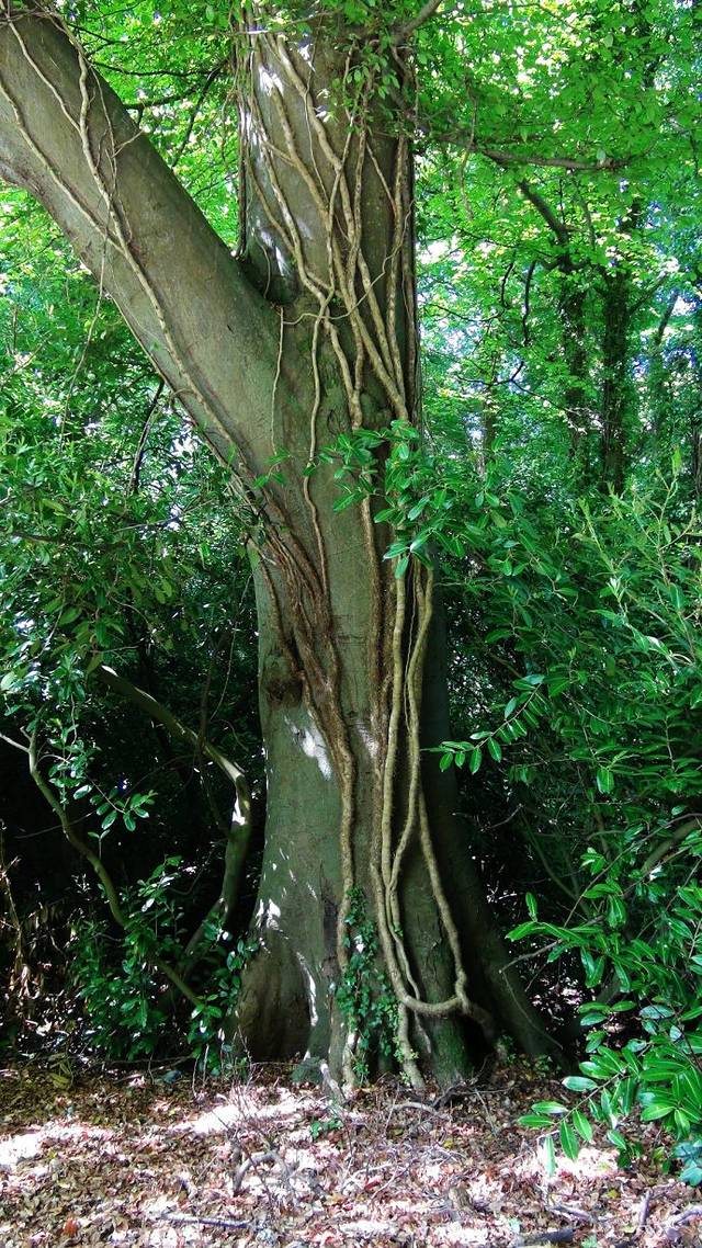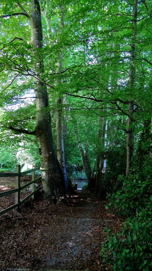 下了公交车向山坡上走就是鲍尔斯考特庄园的方向。半路上一个堆满落叶的绿色小路吸引了我们。
