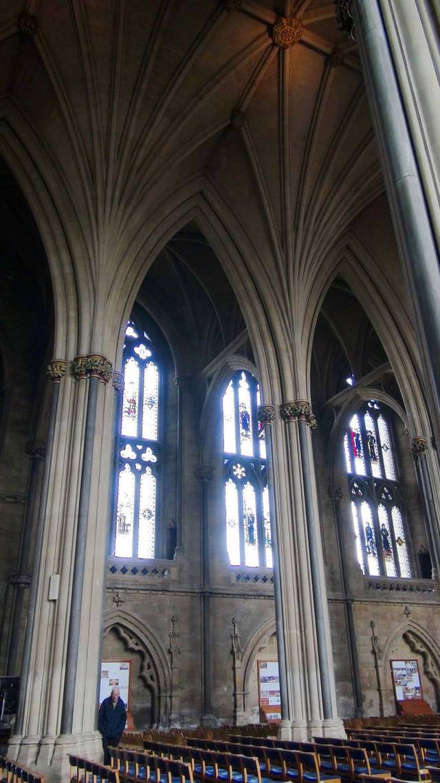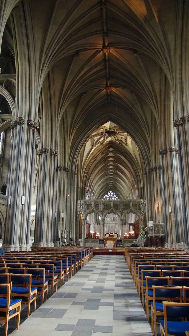 中堂的拱形天花板极具特色,是中世纪厅堂式教堂的代表作之一。修道院的原型在1539年被亨利八世的专员拆毁了。1542年被改造成大教堂。但到了1860年才有了新的中堂。著名建筑师 G.E.STREET 使用哥特复兴式设计重新设计了新的中堂。