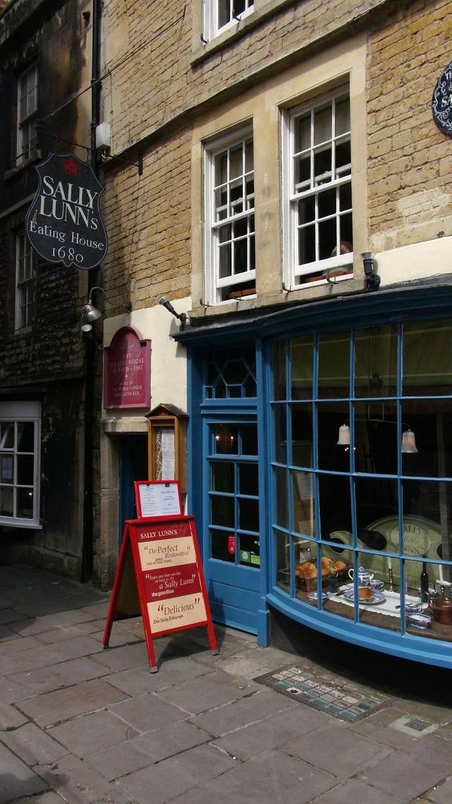 吃午饭的时间到了。到哪里吃呢,给大家推荐一个地方,著名的SALLY LUNN'S EATING HOUSE . 先说这个餐馆的位置吧,就在大教堂南边,距离大教堂最近的第一条胡同里。这个餐馆的建筑建于1482年,是巴斯古城里最古老的建筑之一。