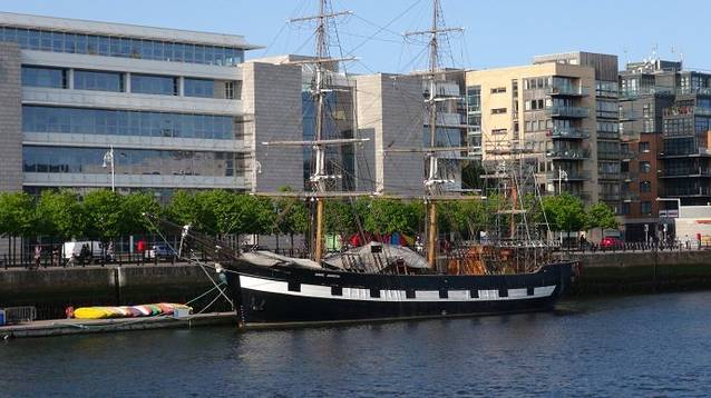 在竖琴桥不远处,利菲河的北岸的一个码头上,停泊着一艘叫做JEANIE JOHNSTON FAMINE SHIP 的船。这条船其实是爱尔兰大饥荒纪念馆。1845年爱尔兰爆发了一场持续五年的大饥荒,史称马铃薯饥荒,在这段时间内爱尔兰人口锐减四分之一,超过百万人移民前往美国...