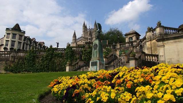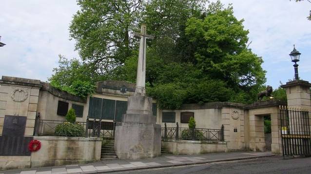 皇家新月楼所在的皇家维多利亚公园(Royal Victoria Park)就在女王广场的西北方向不远的地方。 在公园的门口有一个战争纪念碑。