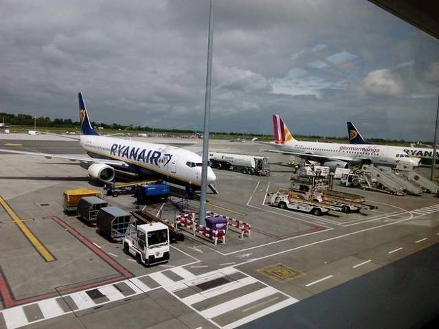 我们预定的瑞安航空的FLT506航班的起飞时间是下午2点40。因此上午就没有出门游览,在酒店里收拾行李,休息和调整。10点半退掉酒店,在酒店不远处的机场大巴站等候机场大巴车。车来了,司机先问去那个航站楼。爱尔兰国际机场有两个航站楼,司机很细心把去往不同航站楼客人的行李分开放置,避免拿错。从我们酒店位置到机场T2航站楼的车票是每人8.5欧元。大约11点半左右,再次来到都柏林国际机场。