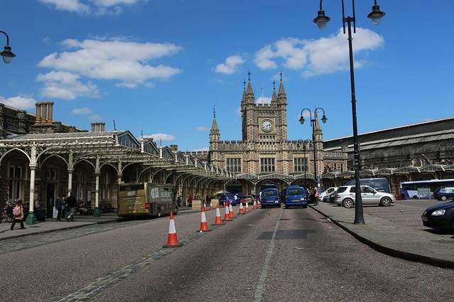 参观完布里斯托尔博物馆我们步行回酒店取行李,准备乘火车去巴斯。到了酒店拿到行李,简单吃了些东西就出门了。布里斯托尔有两个火车站,一个叫做Clifton Station . 这个火车站就在我们住的酒店不远。但是酒店前台服务员不建议我们去哪里乘车,因为那个车站比较小,车次也很少。如果赶不上一趟车要等几个小时。服务员建议我们先乘公交到布里斯托尔最大的火车站Temple Meads Station去乘车,告诉我们这个车站每天去巴斯的火车非常多。差不多每半小时就有一趟,随便上一辆就到了。