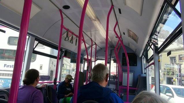 大约等到9:25分时,晚了20分钟的44路公交车终于来了。从我们上车的圣斯蒂芬绿地到鲍尔斯考特庄园所在的威克洛郡的恩尼斯凯利(EMMISKERRY)小镇大约是1个小时的车程。票价每人3.3欧元,(需要自备零钱,不找零,知道我们昨天为什么着急换零钱了吧)。乘车的人不多,我们找了一个上层视线比较好的位置,开启了车上观光时刻