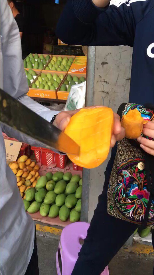 蔬菜水果的批发市场,大堆大堆的蔬菜水果,头一次见,这里主要卖菠萝蜜和芒果,芒果每斤从3.5元到5.5元不等,总之是很便宜,特别大的青芒五块一斤。有同学直接快递发回去,我离得远,快递每公斤要八元。决定自己背上飞机了。