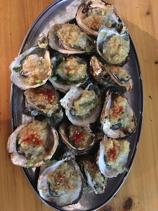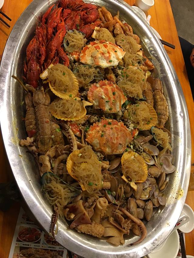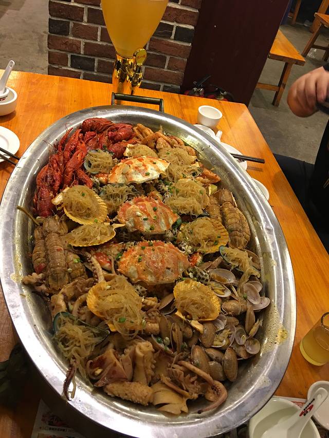 晚上又跑到了中山路,在昌记吃了顿海鲜大餐,作为北方人,要的大份,分量挺足的,价钱也实惠,加一桶扎啤,五个人385。