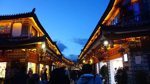 因为出发的晚,坐大巴车(90元/人)到丽江已经三四点了~到了丽江古城给定好的客栈(98/晚)老板打电话,他来接的。这个客栈环境是我住的这些里面最好的,而且房间也很大。很不错。客栈老板也给我们推荐了当地游,可能都是合作,每到一个景点都会有人推荐报团。不过看了一下还可以,就签了合同(香格里拉两日游480/人)休息了一会,收拾收拾逛古城~去吃了豌重庆老麻抄手(不好吃,又贵又少,反正各种坑)吃完就逛古城啦~丽江古城夜晚真的很美,逛了一会也去酒吧一条街感受了一下,喝了几瓶酒~然后就晃晃悠悠的回客栈了(晚上找不到回去的路,老板来接的,当时都十二点了,给老板点个赞)睡觉。导游通知明天七点集合,好吧又要早起(这晚上,太兴奋,闺蜜还给我讲了恐怖故事)(丽江最遗憾没去泸沽湖,时间来不及,下次再来)