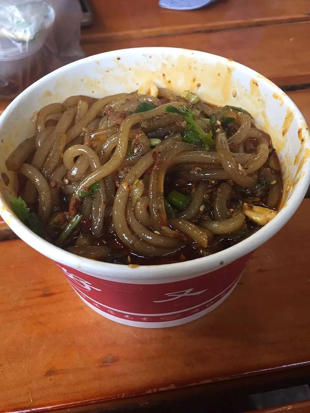 小吃一条街别忘了。这是我最喜欢的酸辣粉,虽然很辣。很好吃哦!