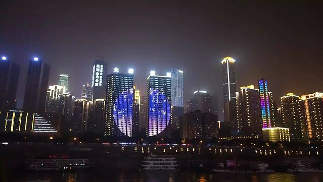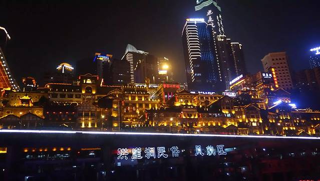 解放碑步行街挺多人的,逛了下来就去找小吃街(较场口夜市)吃酸辣粉啦、因为解放碑离小吃街不远,一会就到了,我们点了酸辣粉和凉面,那就一个辣爽,真的,我现在的总结了一下,重庆人吃辣确实不是盖的,他的辣可真不是一般辣,所以说不能吃辣的,记得要微辣。吃完继续逛,边逛边吃~由于我穿的鞋子有点磨脚,我走不动了😅我就让闺蜜跟我一起先到商场买双鞋子,顺便逛超市买点早餐。买了一双豆豆鞋,超舒服。然后晚上了,我们就去两江看夜景~洪崖洞离两江很近,所以就去洪崖洞拍了夜景照片,路边很多卖邮轮票的贩子,太多了~我们就被其中一个老实大娘说动了,就跟她要了两张(42.5元/人)还包送(我们讲了很久的价呢😊)然后载我们到了一个口子,车是下不去的,so,我们就下车,走了很长时间的路才到游轮口(全是下楼梯下坡路)然后上了游轮,好多人呢~等了差不多十分钟就开动了~然后就各种拍拍拍~围着两江游了一圈、确实,夜景挺漂亮的~~~打道回府~中间出了一个小插曲(因为找路的问题出现分歧,我和闺蜜有点小气【她带错路,主要是我性子太急了、就各种说她】最后坐了一个车终于回酒店了~休息吧)
