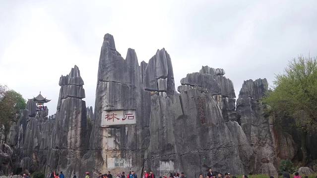 不一会儿就去了石林(进口检票出了小插曲,我闺蜜学生证的问题😅耽搁了点时间,那个高导游那个嘴巴咕噜咕噜念不停,我都尴尬了)、可能是清明放假的缘故、人实在太多了。一路上导游给我们介绍,讲解~然后又是逛拍拍!(期间也有人让我帮他们拍,使劲叫我阿诗玛,当时我心里那个笑开了花,嘻嘻😁)。说回来石林满山的石头,近看石头远看还是石头,很雄伟很大很壮观,感叹这大自然的鬼斧神工。值得一来,两小时过后吃午饭了(抱团这饭真的只能说塞肚子,因为实在是太难吃了)