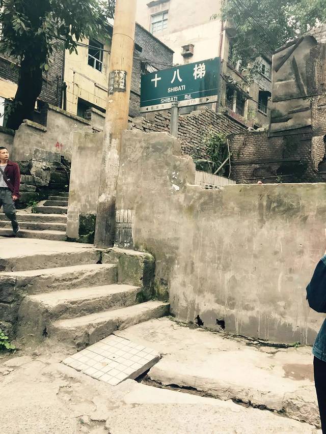 坐轻轨下来的楼梯可以看到磁器口这几个字