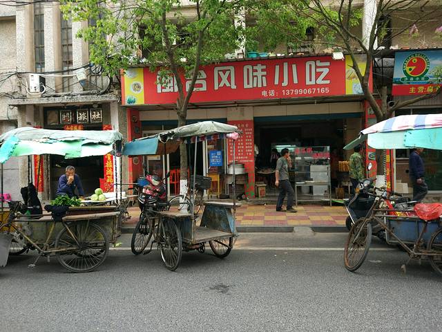 在去这个商场的路上,会有水果啊,地瓜粥啊,猫仔粥,沙县小吃卖。