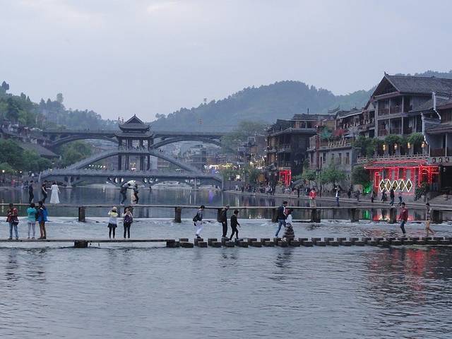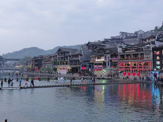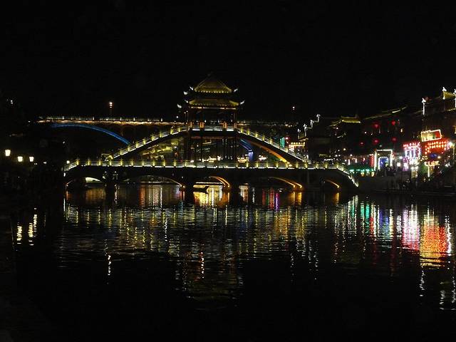 放下行李,就和旅舍刚认识的其他4个小伙伴一起出去吃饭逛逛。晚上也是有人查票的,同行的伙伴发了几张各个景区里面的相片给我,如果手机、相机有这些相片就可以通行了。我就是靠这几张相片在凤凰古城里行走自如的。。。