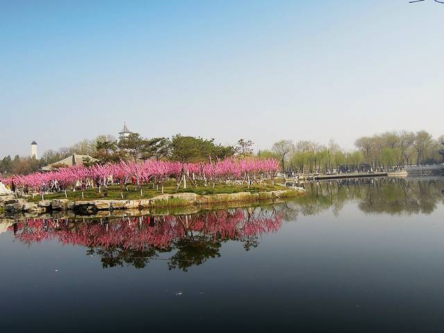 盛开的桃花,倒映在水中。有种三生三世,十里桃花的感觉。