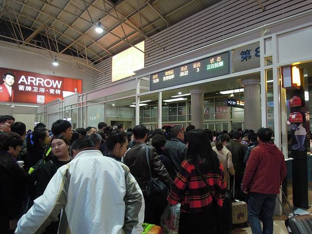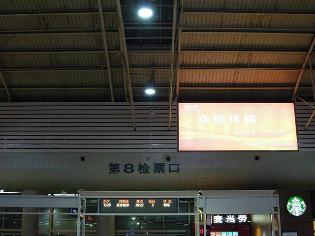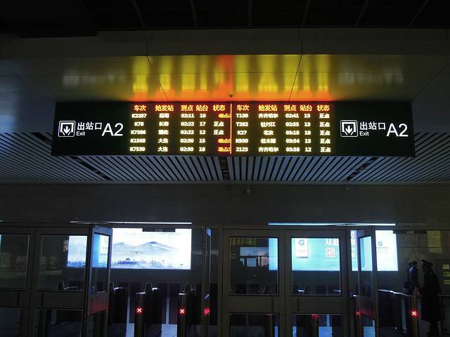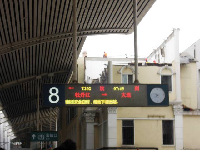 在第8检票口,等待T129列车到来。T129从大连始发,终点是齐齐哈尔。