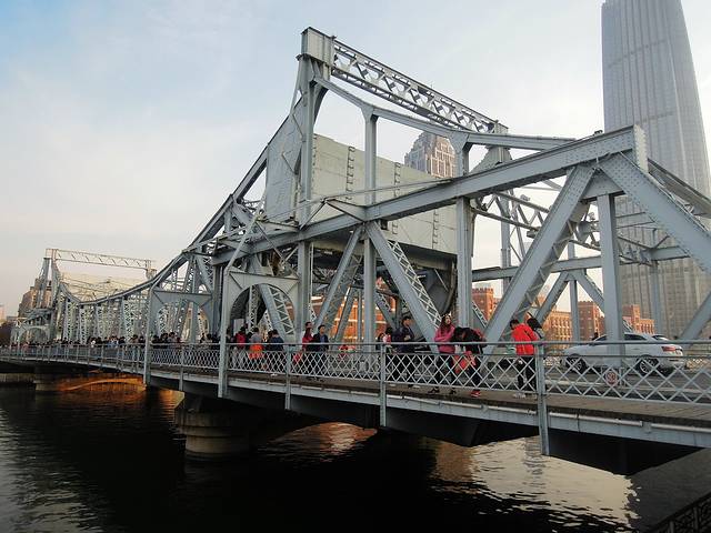 天津解放桥又称万国桥,建于1927年,天津市的标志性建筑之一,也是目前天津跨桥中仅剩的唯一的一座可开启的桥。