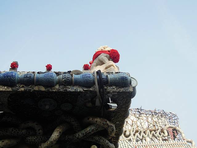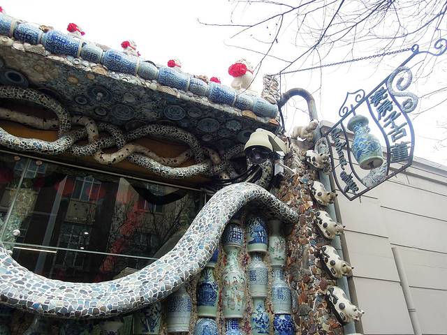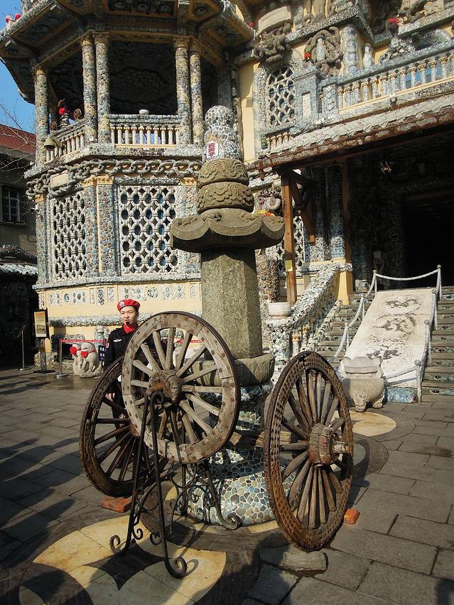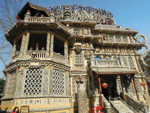 盘旋在房子上的瓷龙,最长的一条达768米,直径80厘米,气势壮观,据说仅瓷龙就用掉800多万片古瓷,也是世界上最长的古瓷龙。