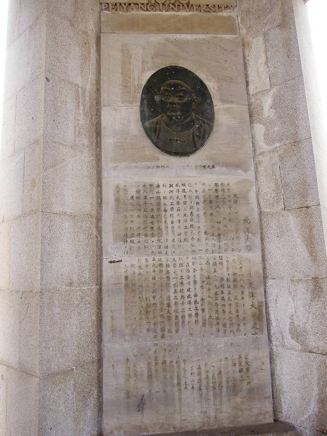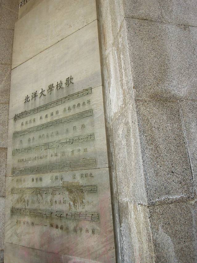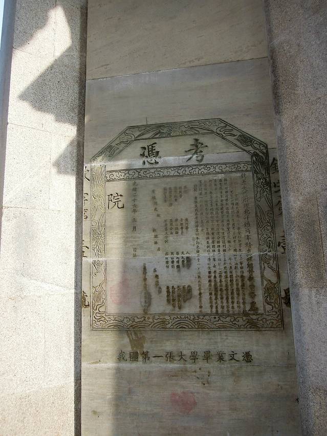 1899年,天津北洋大学堂的第一届学员毕业。1900年元月,学堂颁发了中国历史上第一张大学文凭。由于成绩最优,香港学员王宠惠成为“钦字第壹号”文凭获得者。石碑上刻着简介。