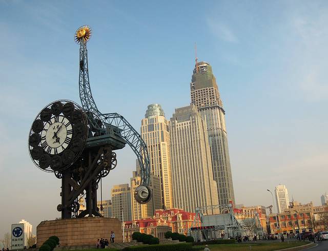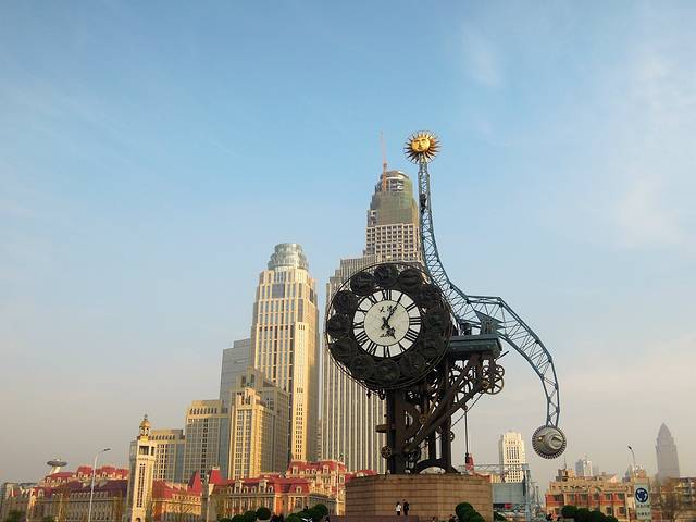 世纪钟广场位于海河北岸,靠近天津火车站,是天津的地标建筑。很多游客前来这里拍照留念。