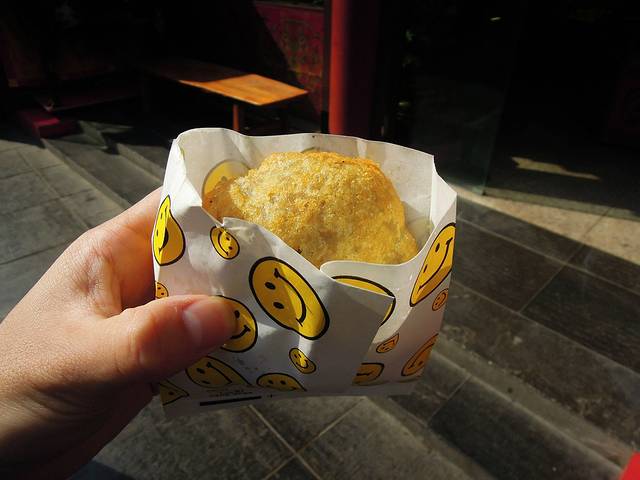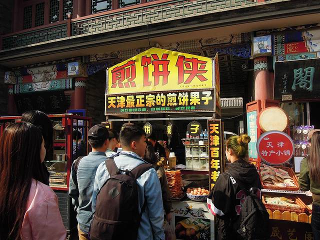 煎饼侠,天街最正宗的煎饼果子,游客在排队等待。