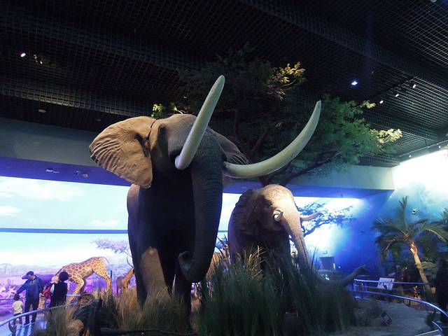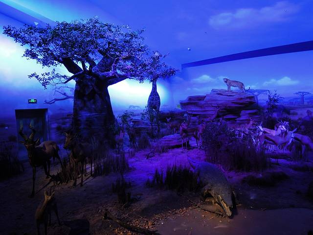 在门口安检出示完身份证,直接进入一楼大厅。随后和老妈乘坐电梯去往三楼"家园·生态展厅参观。该展示面积为3400㎡,以美国著名慈善家、天津市荣誉市民肯尼斯·贝林先生历年捐赠的200多件珍稀世界野生动物标本为基础,同时增加馆藏部分珍稀野生动物标本,如大熊猫、金丝猴等,共同展示世界各大洲的典型动物群。
