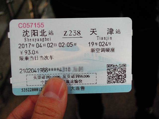 4.4 :K2287(昆明-长春)天津站17:12出发,4.5凌晨1:50到沈阳站