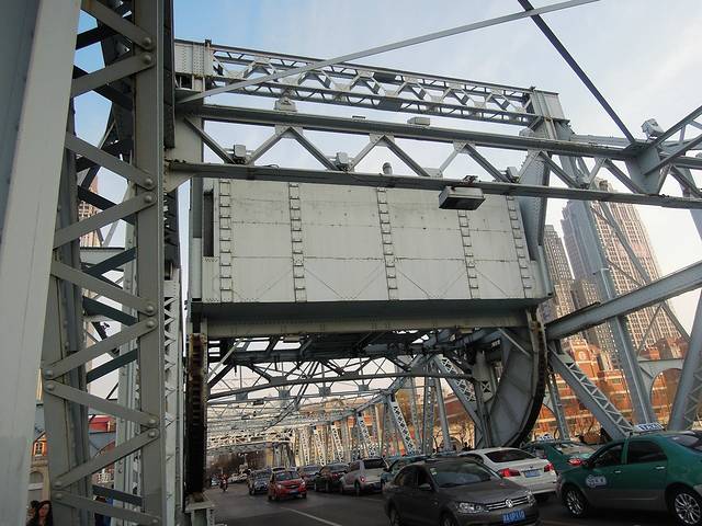 金汤桥是天津最早、也是目前国内仅存的三跨平转式开启的钢结构桥梁。