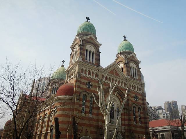 西开教堂位于天津市和平区西宁道9号,坐落于繁华的滨江道商业街的最南端,始建于1917年,是天主教天津教区的主教堂。西开教堂是天津市区最大的天主教堂,始建于1917年,教堂整体呈现巴洛克式风格。