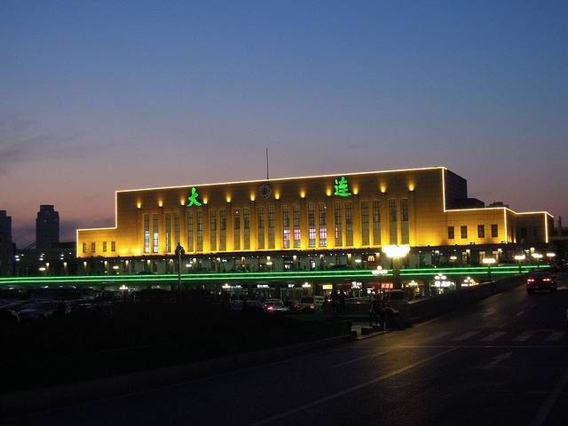晚上18点41,在这个角度,拍到大连火车站全景图。