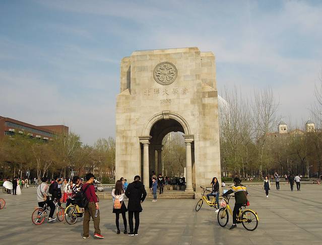 15点27来到天津大学,看到游客纷纷在这里拍照留念。