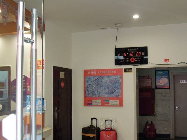 早上7点13分和老妈从电梯出来,来到一楼大堂。
