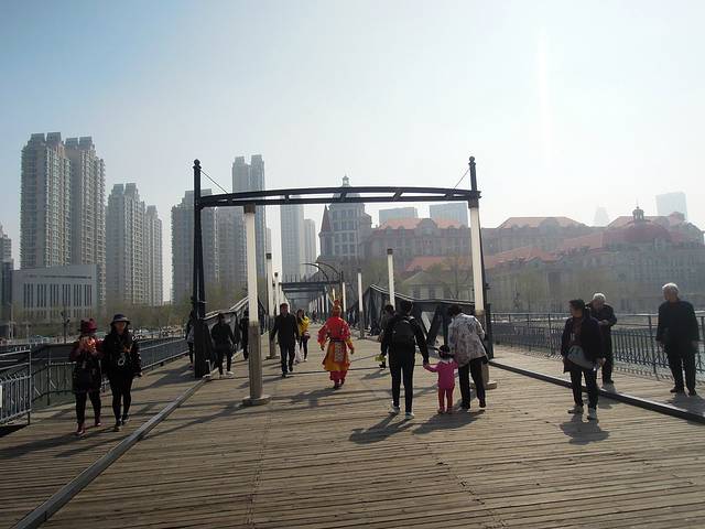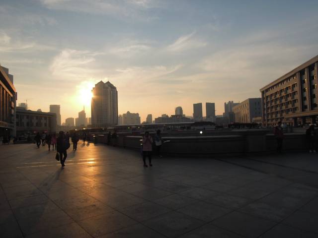 16点20在天塔站,乘坐8路(空调车2元/人)去往天津站。16点40到达天津站,时间尚早,于是和老妈前往世纪钟广场和解放桥走走。