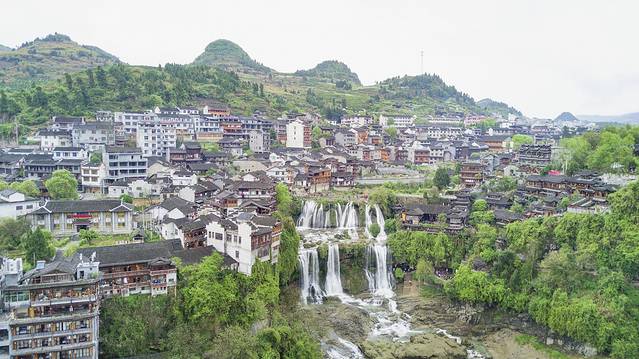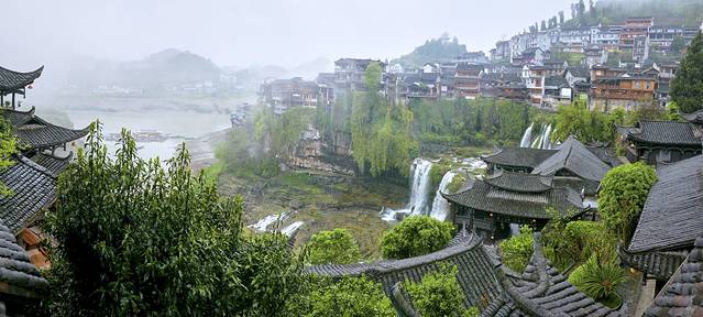 芙蓉镇,是那种看了一眼照片就忘不掉的地方,这仿佛是一座建在瀑布上的小镇。