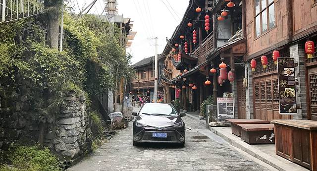 芙蓉镇的道路略窄,曾经建造的时候也没人想过世界上会有汽车的出现,所以行驶空间有限。还好广汽丰田雷凌双擎对于这种环境问题不大。年代久远的石板路走起来是坑坑洼洼的,但是开起来还好,车身扭矩缓振系统对于这种状况很有一套。