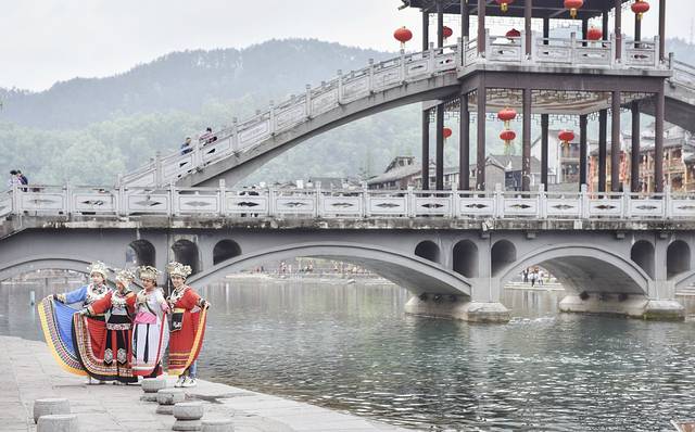 凤凰的风光是极美的,游人如织,盛装带团的苗族导游总是让人忍不住多看几眼。看着那些美丽的苗族姑娘环配叮当地走过,不禁让人一阵恍惚。