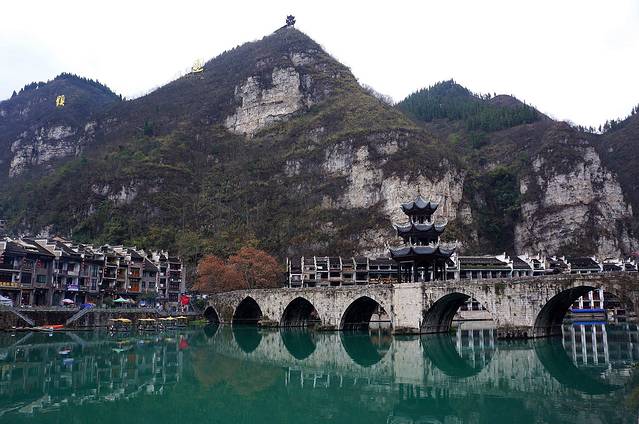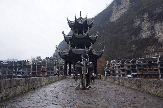 步行到“一号风景桥”,这里有可直达到“观景台”的观光车,5元/人;个人建议不用乘车前往,其实走走路,而且一路的风景也不错,而且在苗寨很多地方都可以直达上去。风景都在路上啊。