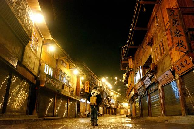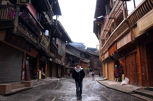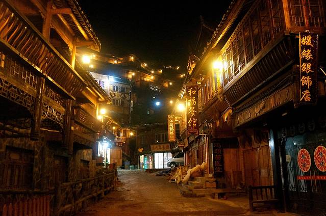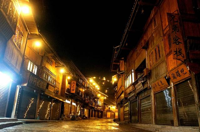 在“观景台”捞完pp,走进苗寨内寻找夜晚宁静的苗寨,也是件相当惬意的事,可能是现在本就有些冷,晚上人不多,是所以完全不耽误拍照时太多过往人。夜间“古苗寨”别是一番味道。