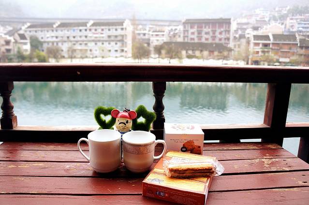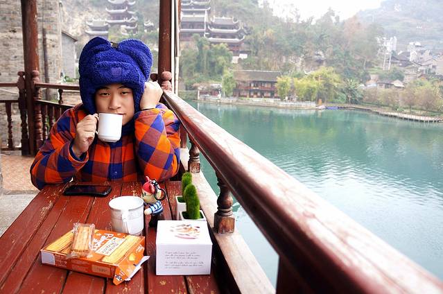 选择了一家叫“悠然居”的客栈,因为是吊脚楼,当然这里除了这家还有别的,因为是淡季去,所以价格不高,两天也就:250大洋,但是旺季去,可是要贵很多,据说能上500一晚上,把室内和室外的景色一起奉上了的,全木设计带着小清新房间,窗外正对“青龙洞”在这里就是要和在“双廊”一样,如果是1月左右或是2月一定要选择有空调的,住在“水面”上,睡个懒觉被美景叫醒,吃早餐。