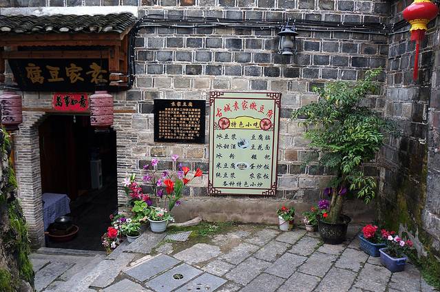 “袁家豆腐”在古镇内也是相当知名的一家豆腐作坊,重庆人到这里来一定不能错过“豆花面”了,穿街走巷找到这家☞豆花绝对够嫩,且没一点碘味儿,调料有些区别,这里吃辣椒习惯把蒜直融到辣椒油里。