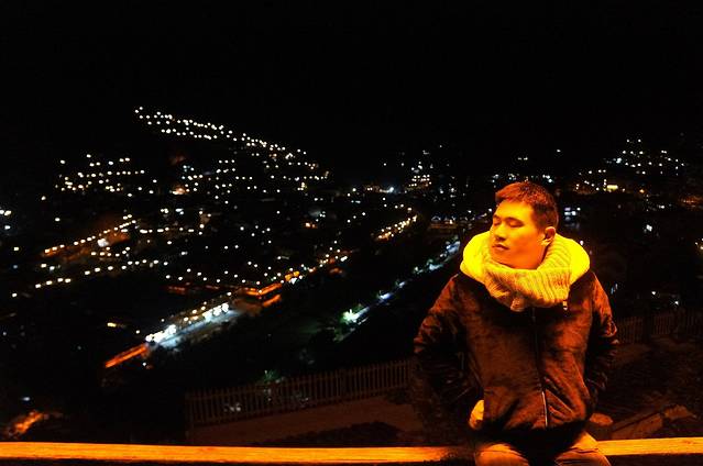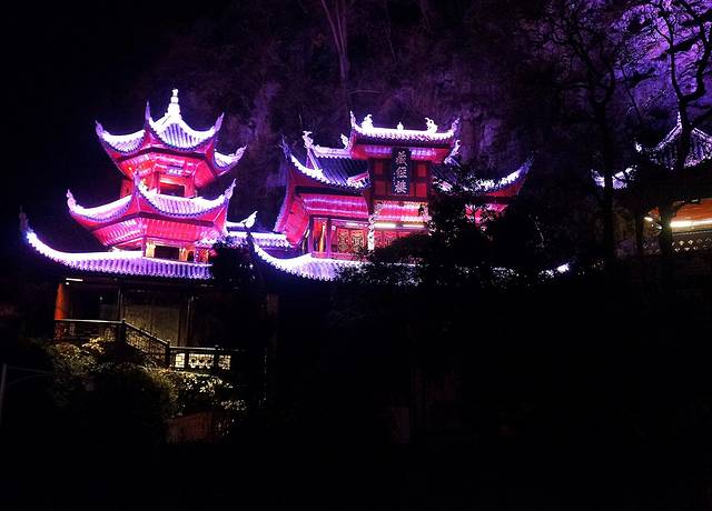 对于胖子来说,最苦莫过爬坡上坎,所以,我是在“石屏山”上淋著雨,等著夜幕低垂,拍pp才下山,这冷啊,好在,夜景给力,也对得起这次等待。