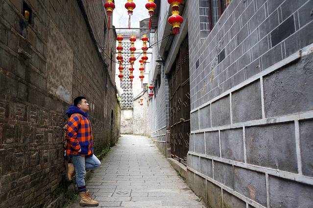 在古镇就是随意走走,感受怀旧的氛围,当然,在这里印象还深的是“井”,感觉才离开上一口“井”,这有冒出一口;在这里瞎转悠,还有不能忘记就是要往山上慢慢走,可以到达“四宫殿”,殿免费,拍景不错。