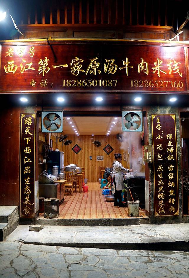 在安顿好行李,之前又是迷路在山里摸爬滚打后,晚上出去觅食,顺带拍拍苗寨夜景;这一家吃“粉”的地儿,之前就多次提到,这里就简单带过,确实好吃,这次行程里也是对次流连忘返的地儿,值得推荐。