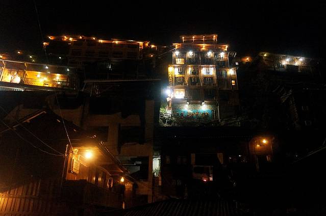 “千户”的夜景,绝对是值得扑捉的,从我住的客栈,旁边有个小门就看直通“观景台”;当然,我们坐落在半山的客栈也是拍pp的好地方,也一同不容错过。所谓“千万灯火”也就是如此。