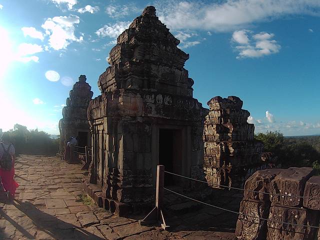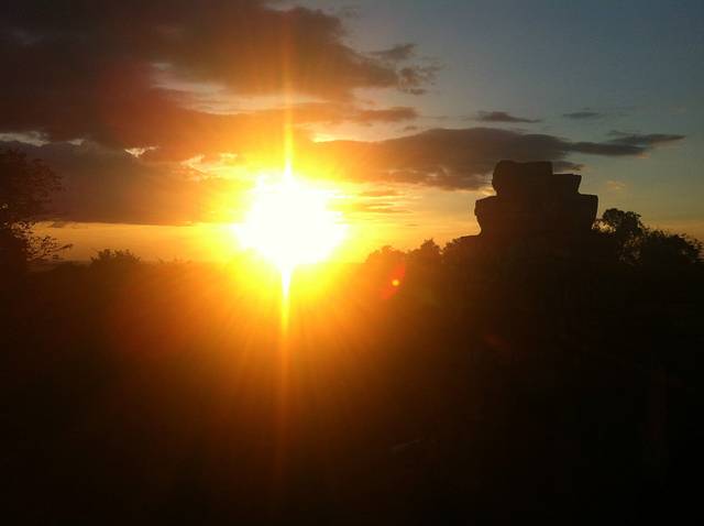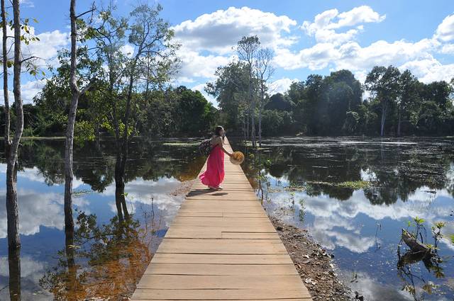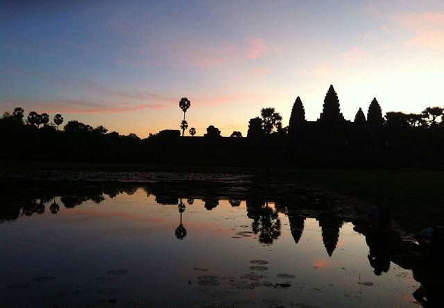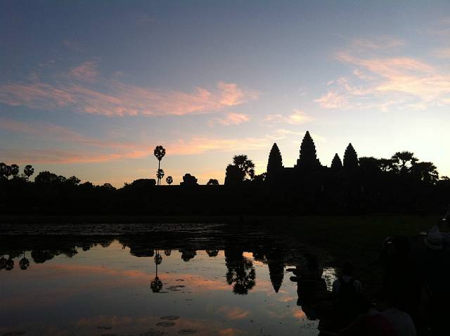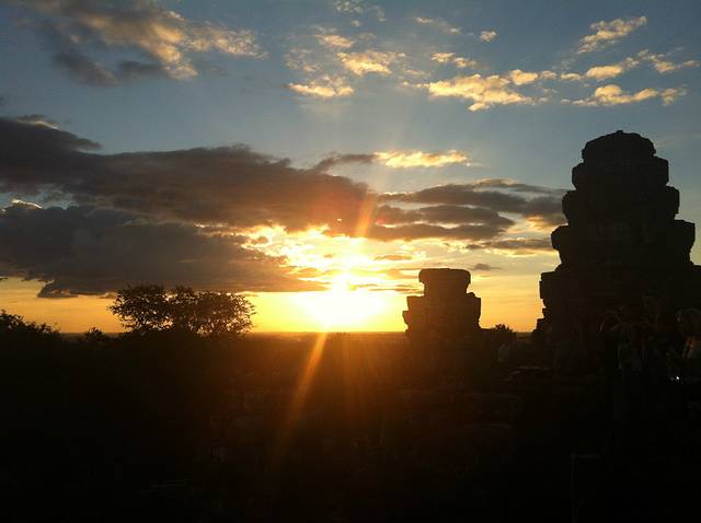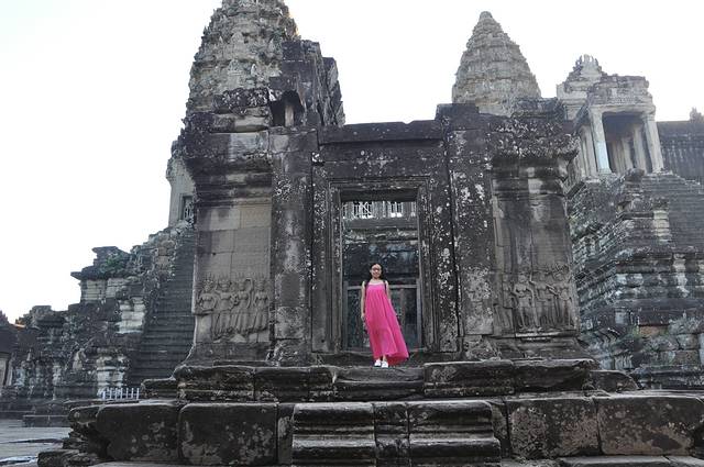 小吴哥是灰色的,小吴哥就是我们通常所指的吴哥窟,柬埔寨国旗上的图案还有签证上面印的图案都是这里,它是吴哥古迹中保存最完好的一座寺。建议坐TukTuk车去小吴哥看日出的小伙伴们穿件长外套,早晨一路上的风有些凉。