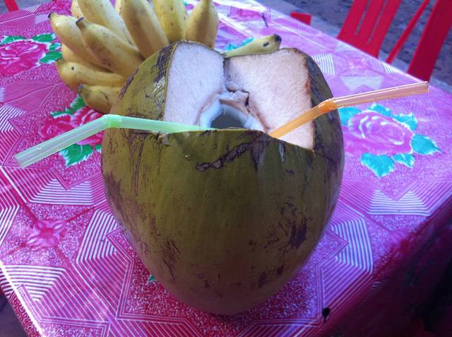 下面这个椰壳是著名的柬埔寨传统美食Amork,点的鱼肉Amork,7美金一份,只尝了一小口便都送给TukTuk司机了,柬埔寨的香料味是真心咽不下去。