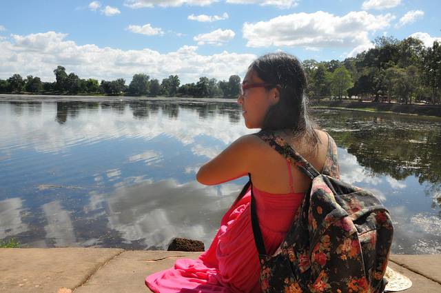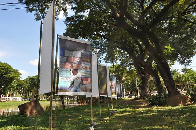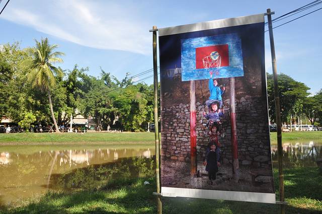 刚好赶上了第十届吴哥摄影艺术节在暹粒河边展出的作品。