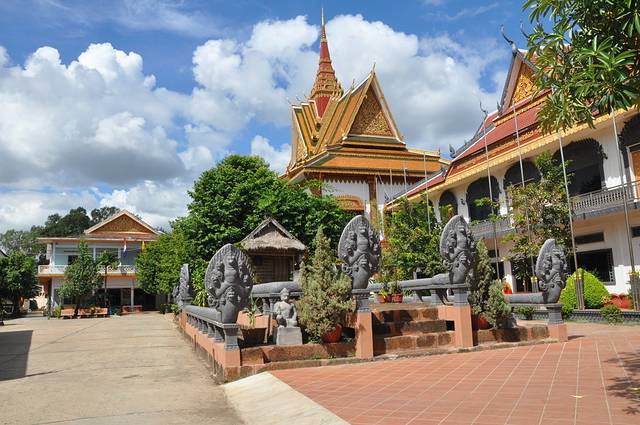 预订到了吴哥窟5日3晚的自由行特惠套餐,包含天津往返暹粒的含税机票及3晚吴哥王国酒店住宿含酒店早餐。柬埔寨可以办理电子签及落地签,偏爱纸贴签的我们是网上找的代理。暹粒的机场比较小,没有廊桥及代步车,下了飞机跟着人群沿着甬路走到入境大厅门口,需要在门口填写白色的身体健康情况表,然后将表交给门口的工作人员,换一张黄色的健康证明。柬埔寨的海关办理出入境手续时会向中国游客索要小费的,仅向持中国护照的人索要哟,他们会用中文讲“小费小费,10块10块”、“10块不够,你要20块”,真心臭不要脸,摆明了欺负中国游客,反正我们都没有给,我们的出入境卡填写得非常完整,挑不出毛病,就是录指纹的时候被拖延会儿,右手录完又让左手录的。从机场打TukTuk车到酒店是5美元,十几分钟的车程。