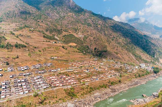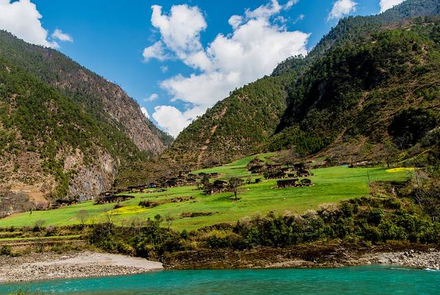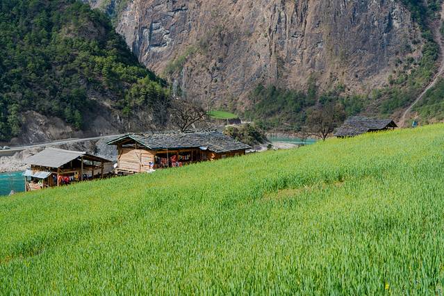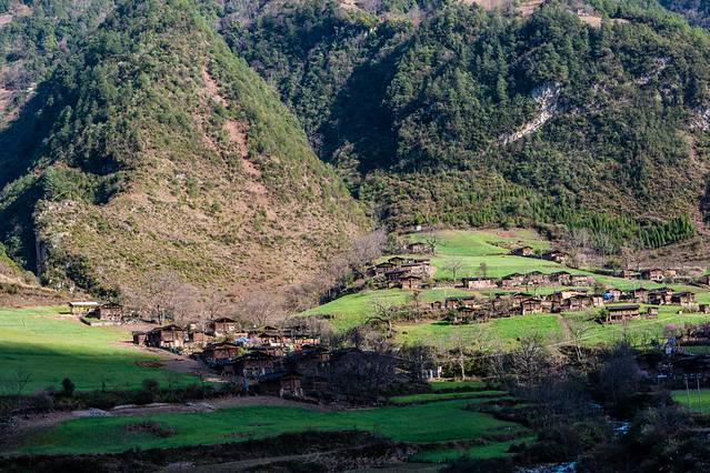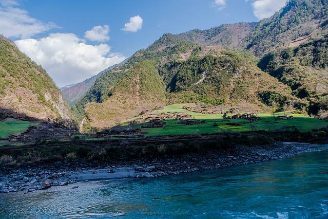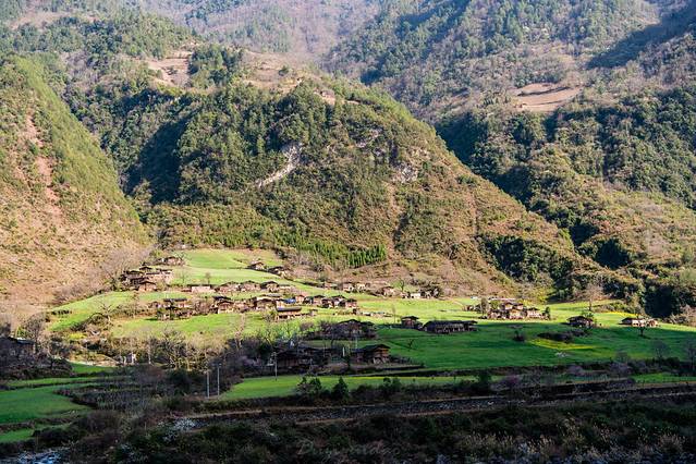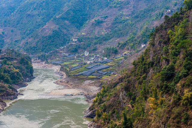 ↑ 怒江边较少看到这样的平坝,差不多每一个平坝,都有这样一个小村落