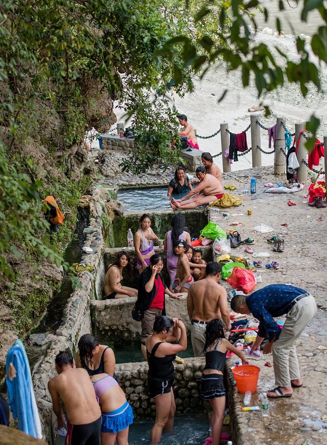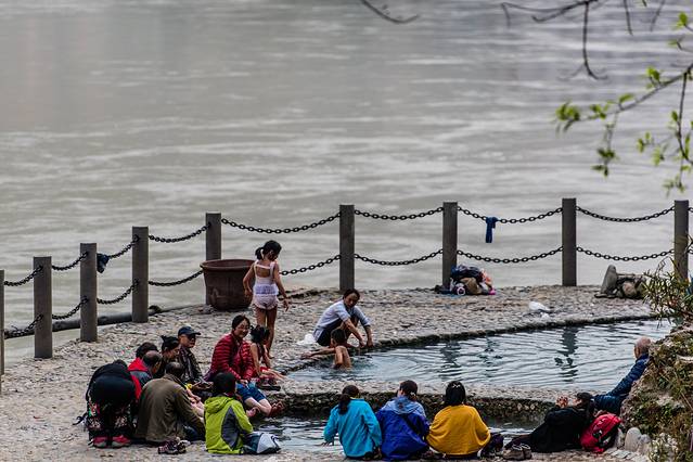 澡塘会据闻很多地方都有,但怒江峡谷的澡塘会却更自然、更民族、更传统。其中首推登埂河澡塘会和玛布河澡塘会。这里没有遮拦,男女共浴。泡澡者同卧一泓,敬老让幼,互聊家常,时时传来一阵阵欢笑,其乐融融。有意思的是女人们并不反对男摄影者的闯入,反而依仗人多势众,对他们高声峡侃起哄,搞得他们往往面红耳赤,手足无措。